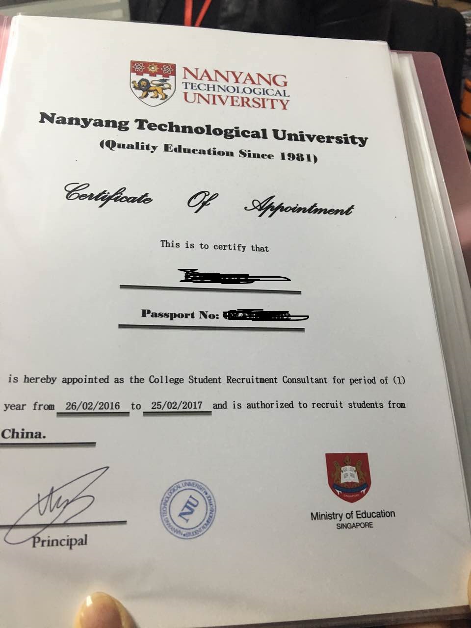 pencilsg • • 48720 次浏览国内亲戚收到的,说可以帮忙申请NTU