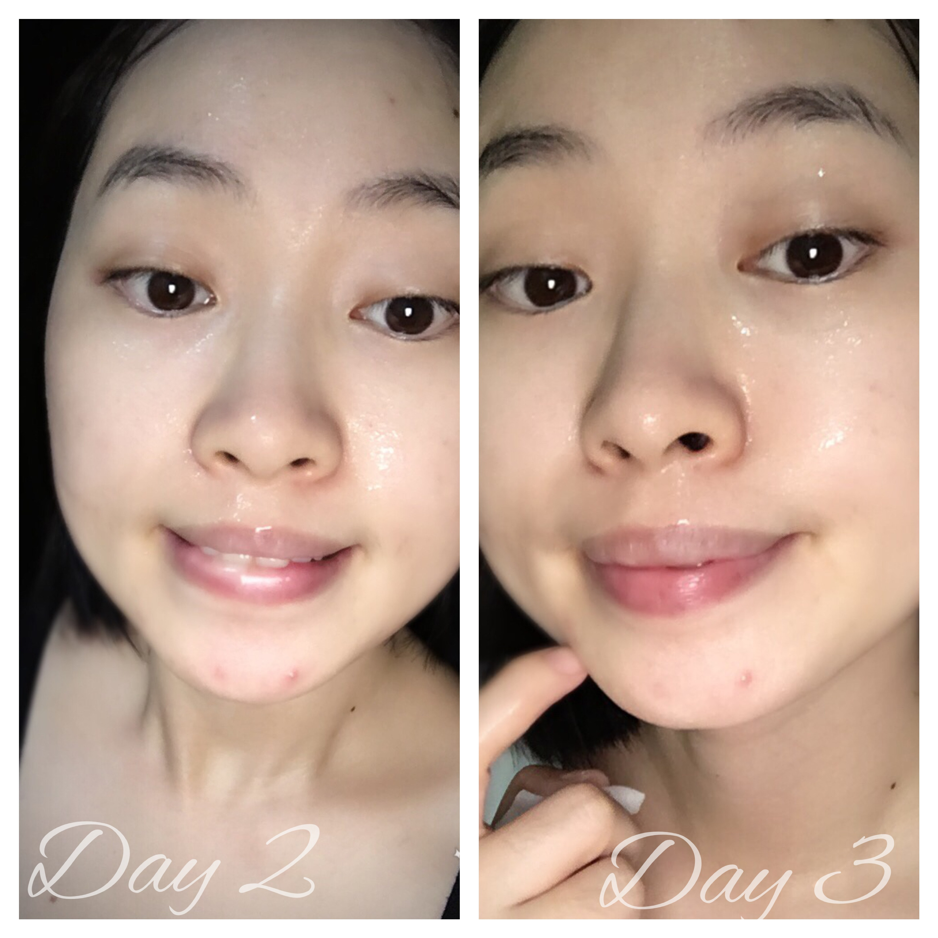 熬夜的痘痘就要疯狂保湿才行,两天都在敷面膜。。day 2没擦药膏的痘痘一早就冒了白头,晚上洗脸的时候已经不知道什么时候自己掉了,不红也不肿,貌似不会留疤,恢复的很好。右边擦过药膏的要死不活的,到了day 3,白头还没有要掉的意思,我刚刚已经替广大爱抠的妹子们抠掉了。。。