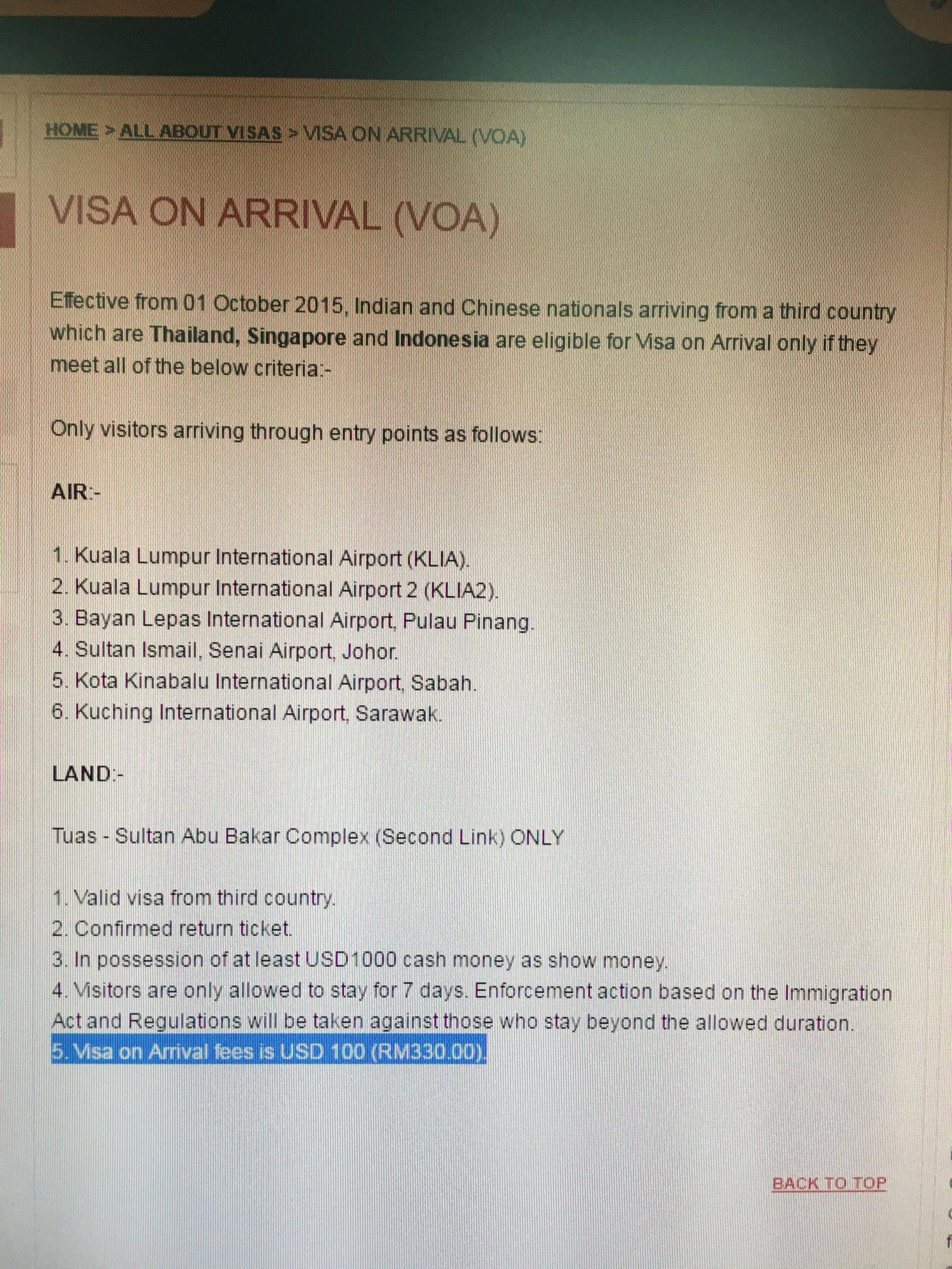 马来西亚的Visa On Arrival是这样滴