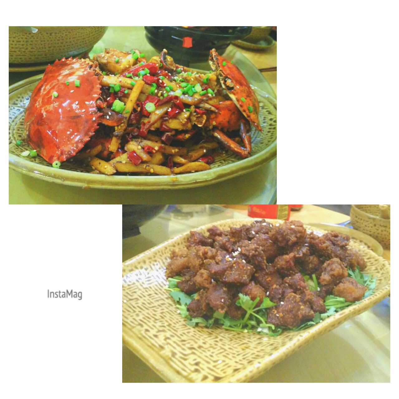 香辣蟹螃蟹新鲜度不是特别好了,炸的时间太久有些老,配菜是土豆条且只有土豆条,香辣蟹炒年糕粉丝表示不能忍。孜然羊肉首先羊肉不新鲜,是冷库那种,然后做法是纯油炸那种,特别油,底下垫着一坨黄瓜丝和香菜,因为放的有点蔫了又是貌似吸油的所以大家也没怎么吃。建议这个孜然羊肉还是去巴刹采购新鲜的羊肉,最好是羊羔肉,味道会立马提升,然后香菜可以考虑出锅时炒在一起,孜然辣椒熟芝麻多一些,黄瓜就算了吧,油的话在厨房油炸后在吸油纸上吸一下。