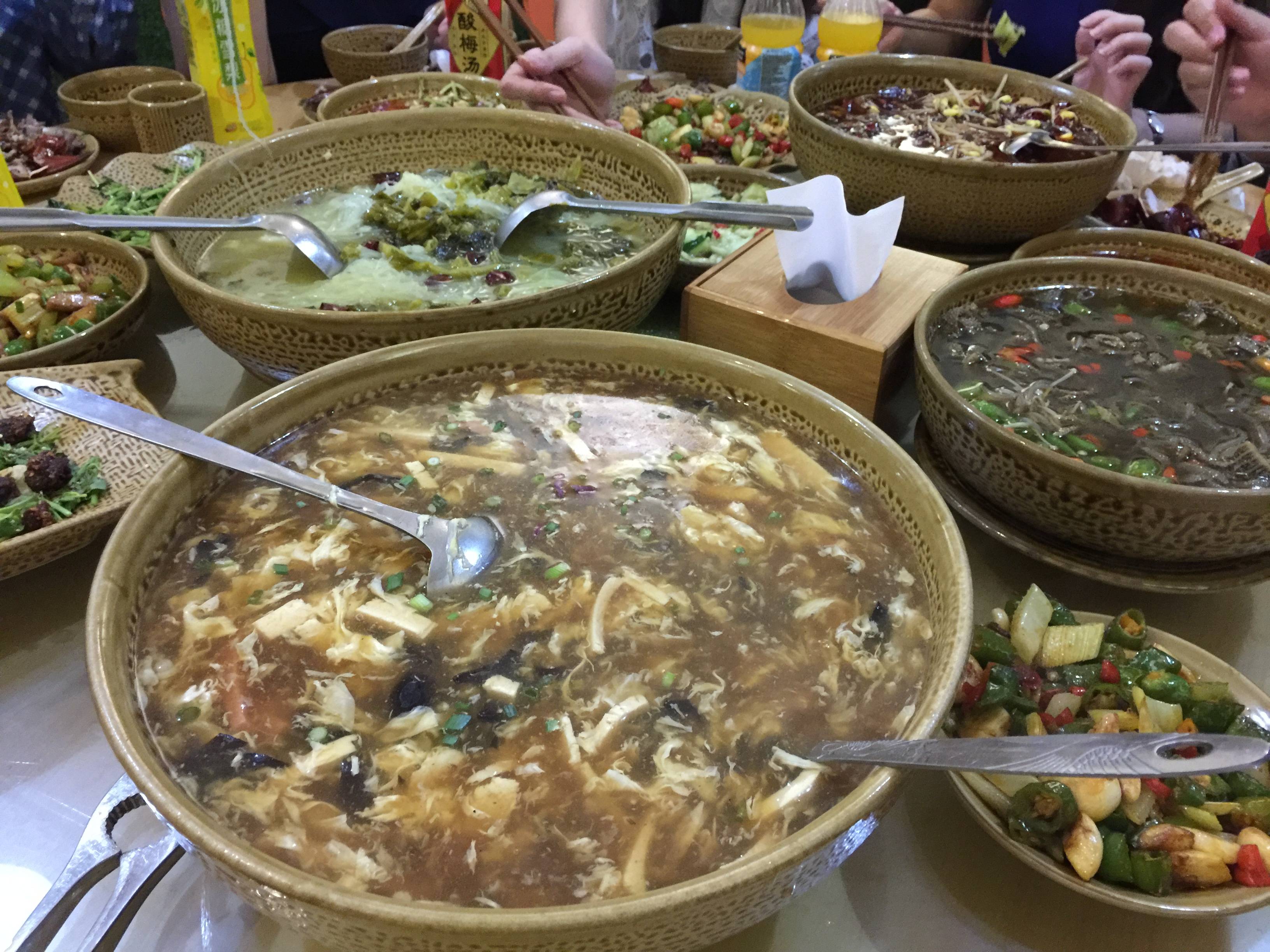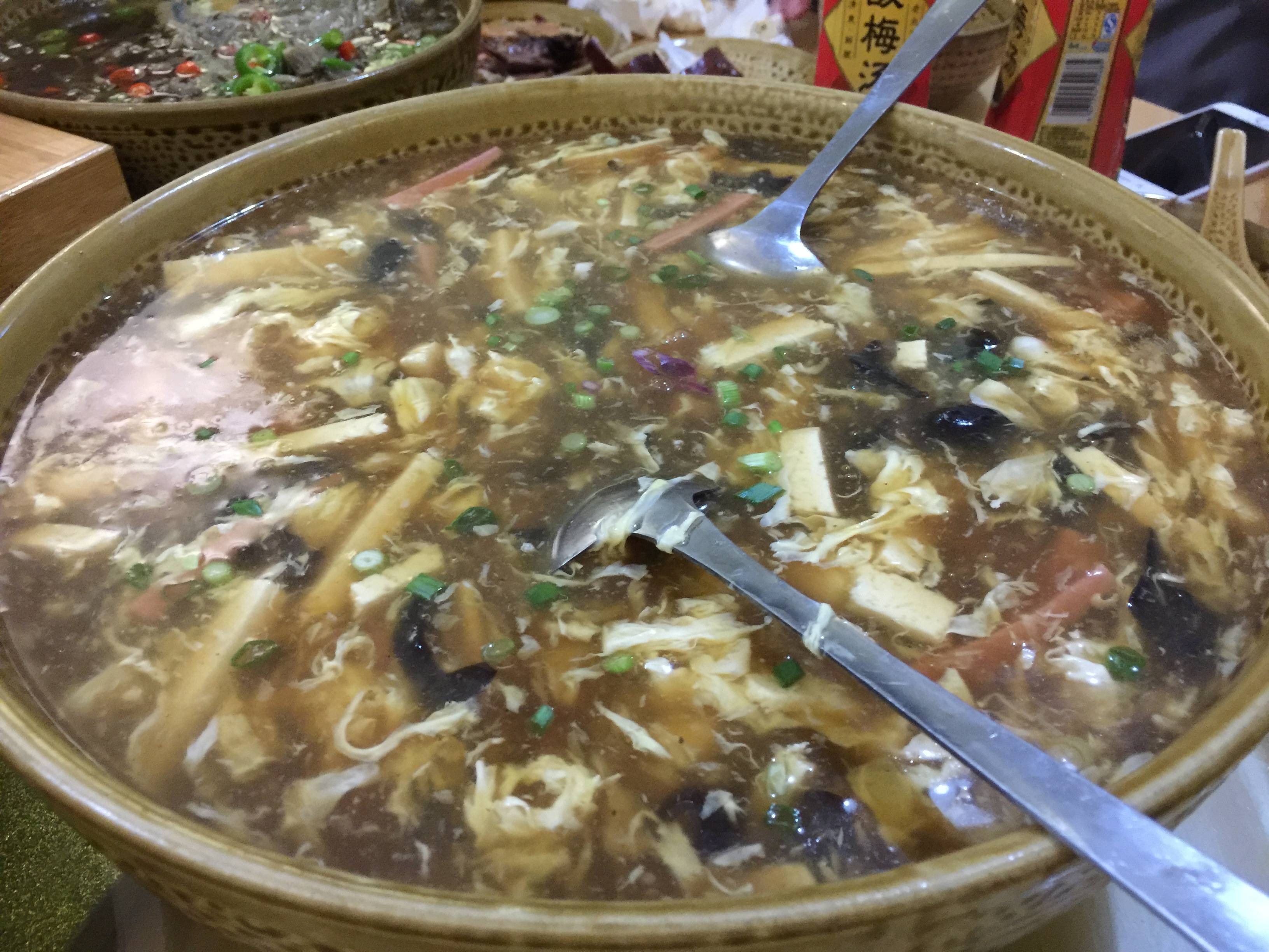 十四道冷热菜,各有千秋。有老板引以为豪的《酸辣鱼》,独具特色的《小炒猪脚皮》;也有老板惋惜没操作好的《孜然羊肉》。这里面多数的菜都可以做的更好,还有很高的提升空间。总是让高颜值的老板掂炒勺也不是长久之计。望看到这里的川菜厨师傅伸手拉香满锅一把,可以强强联合,也可以传授一两个川菜的技巧。老板人好,必涌泉相报。菜色4/10