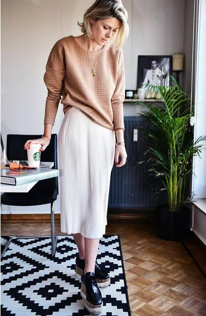 宽松毛衣配铅笔裙,特适合春秋微凉时候的天气。