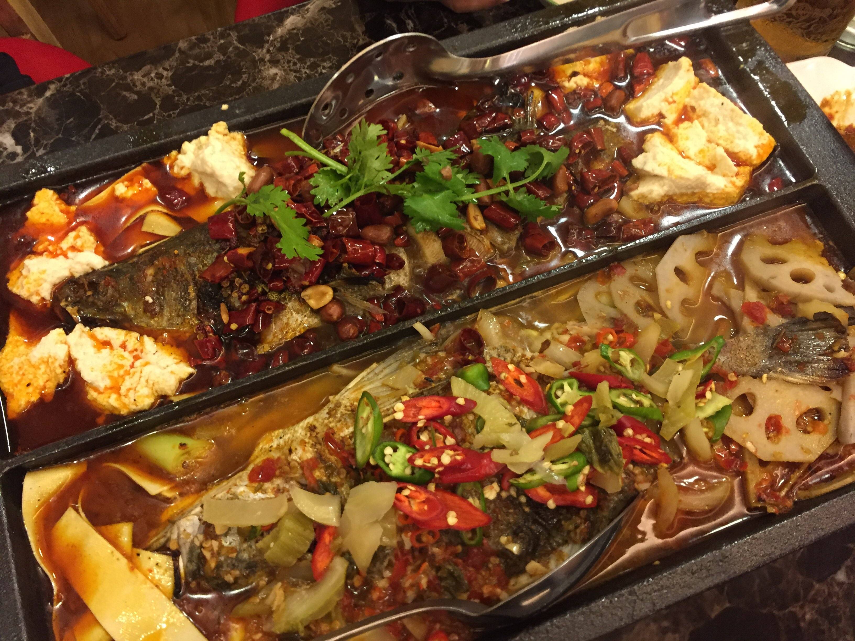 一鱼两吃:我们叫了招牌豆花和酸辣,豆花是无限量添加的,配菜我们点了藕片和豆腐皮。我个人比较喜欢酸辣的。不过不知道为甚么,我总是还是最爱重庆烤鱼的烤鱼。