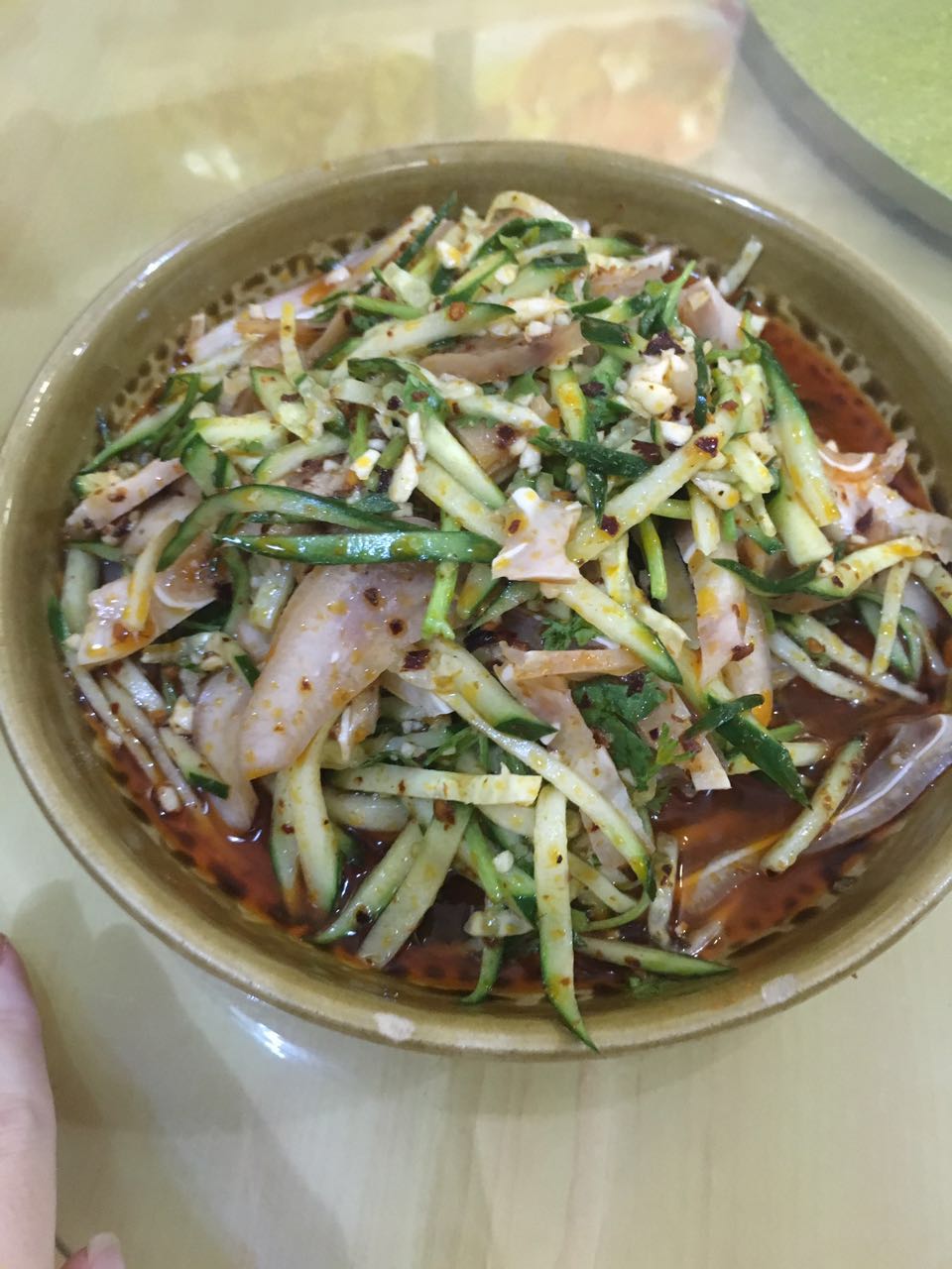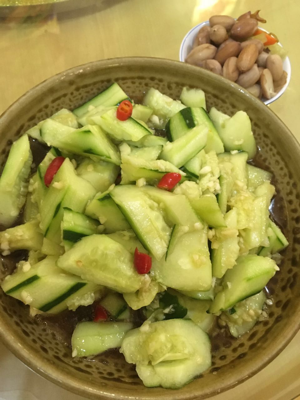 拍黄瓜也是一个普通的凉菜。9分。哦那个炒豆苗的菜我忘记拍了喔!!作为素菜它可以拿10分!!!但是我是肉食动物所以我也只能给它最高9分了,怪我咯!