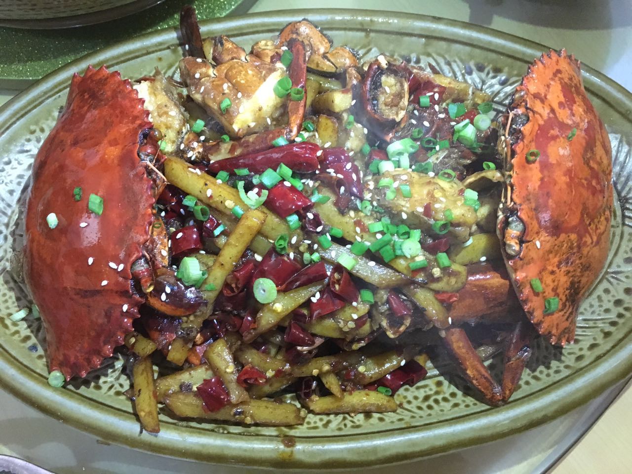 香辣蟹里面的土豆也可以打10分!!!感觉就是红烧薯条的感觉!!好香的!!我觉得就着土豆我就可以吃完一碗饭!!but again,土豆是素菜不是肉,再好吃也是9分。螃蟹我没吃,我懒得搞脏手,而且看起来也一般。