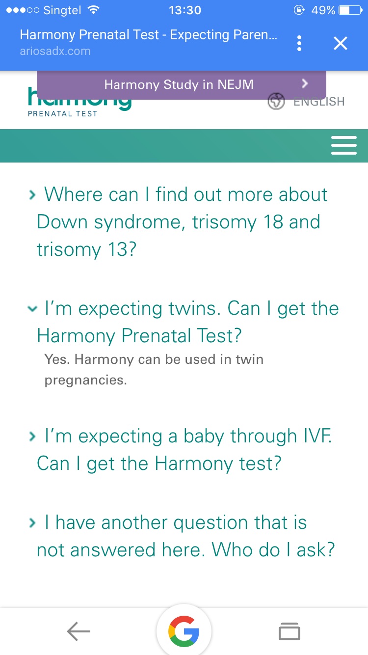 谢谢mm,gynae和我说这种依赖血液的都不太准。他完全没和我说harmony可以也,我下次去问问。他完全没和我说harmony可以也,我下次去问问。