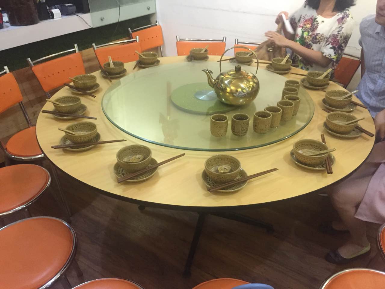 这是我们的餐桌,餐具古香古色,我个人是挺喜欢的。