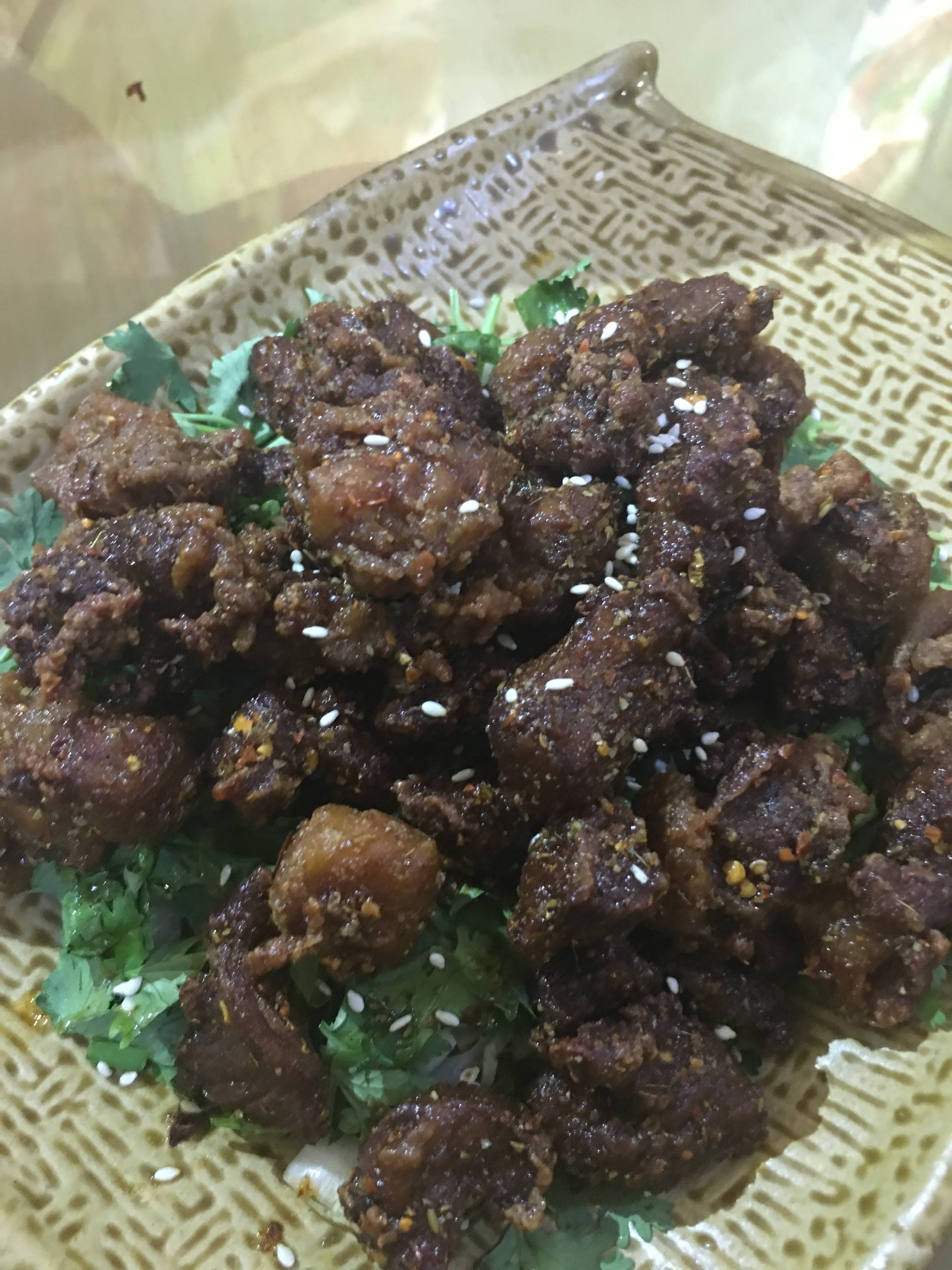 孜然羊肉,卖相很不错,羊肉也新鲜,可惜炸的稍微干了一点。