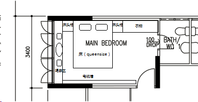 我会在靠近厕所那里做个L型的walkin wardrobe顺便就把厕所的门挡住顺便就把厕所的门挡住