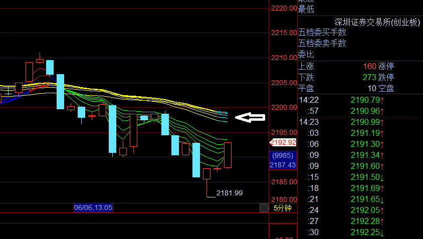 创业板五分钟线已转入下降趋势