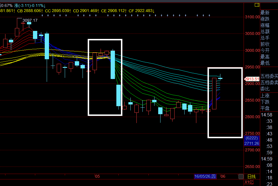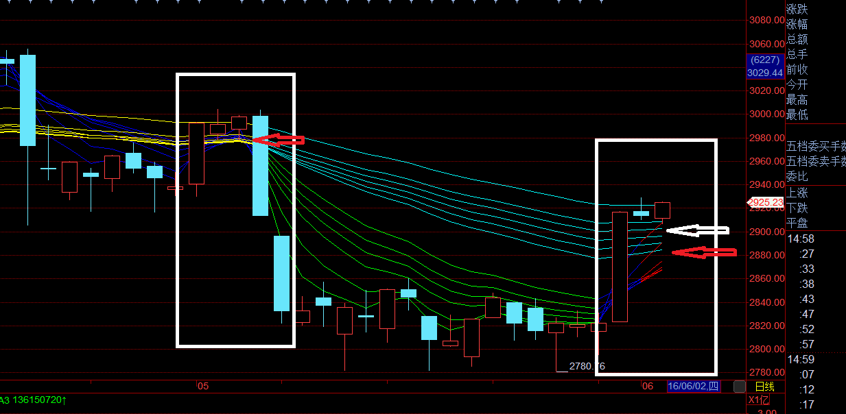 介绍完我自己设定的支撑位后,就会发现5月3日的大阳线突破和5月31日大阳线突破后的异同。
