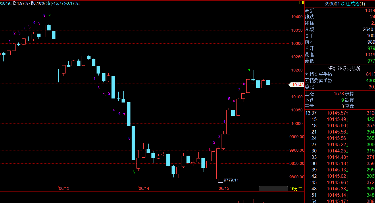 深成指红的,沪指和创业板绿的