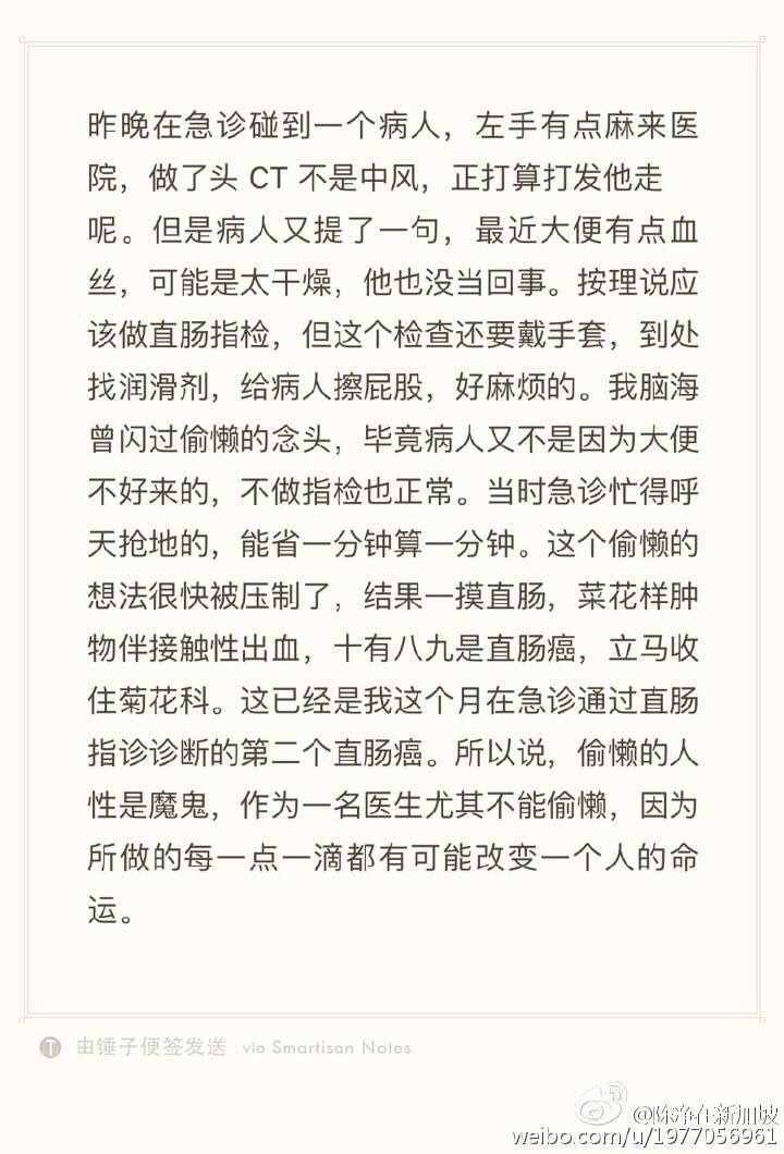 那个医生里面一开始说的按理应该做直肠检查的但他想偷懒,后来一转念又做了