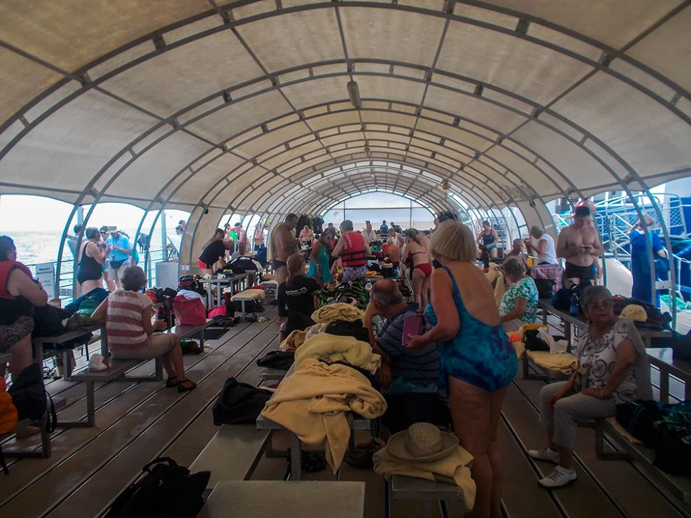 15. 凯恩斯 (Cairns) 是去大堡礁的跳板,我们带着Nikon water-proof 小相机去了,但没找到高度近视的潜水镜,无法snorkeling,俺这只旱鸟只在水面上扑腾了几下。坐潜艇和玻璃底船是少不了的,但根本无法拍出清晰照片。这是为下水做准备的浮船平台。