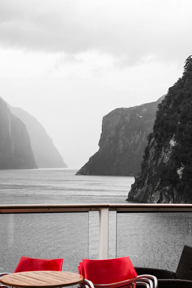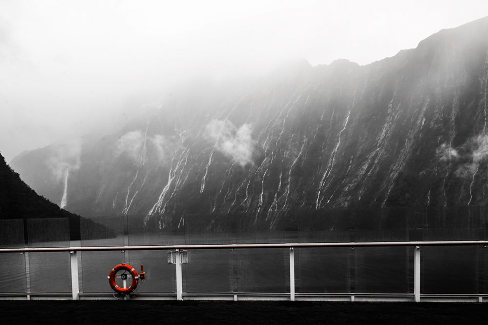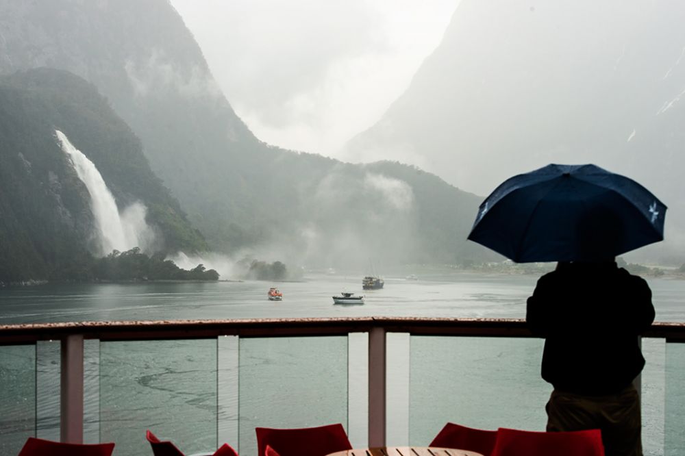 8. 船到新西兰,首先是进入南端几个著名的Sounds, 其中Milford Sound尤其壮观,狂风大雨,拍不出更清晰的片子了。