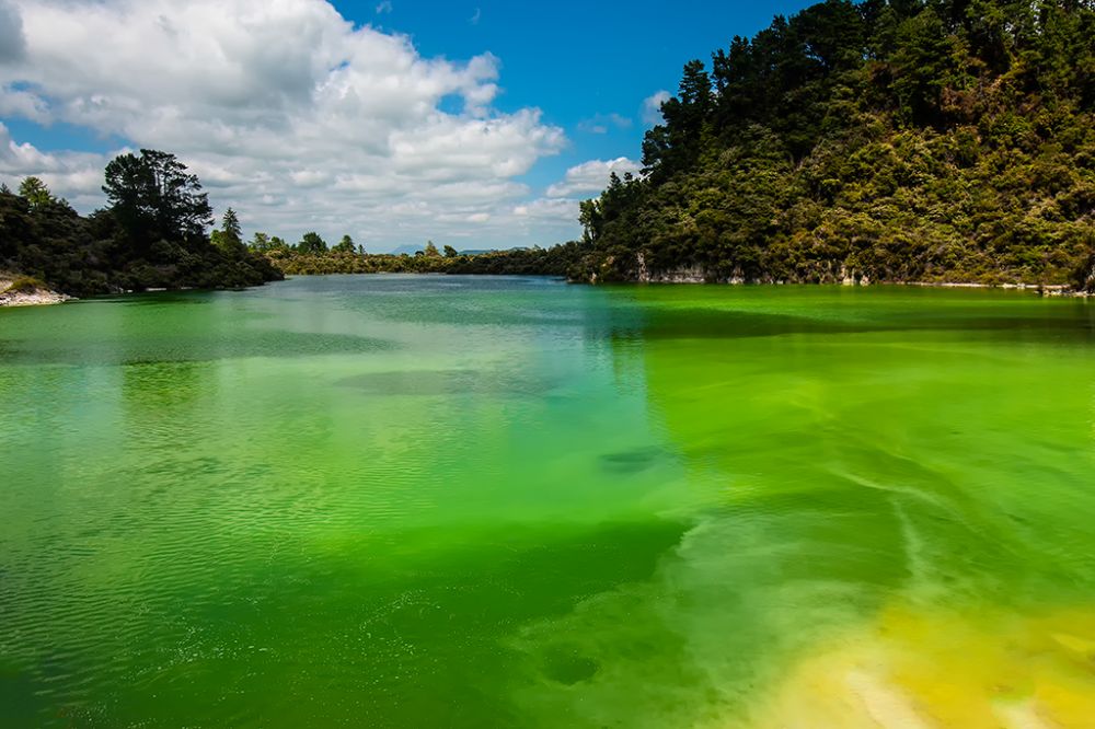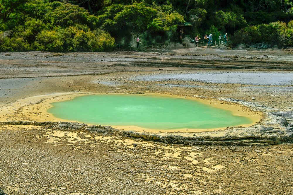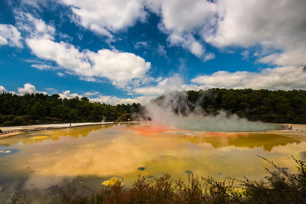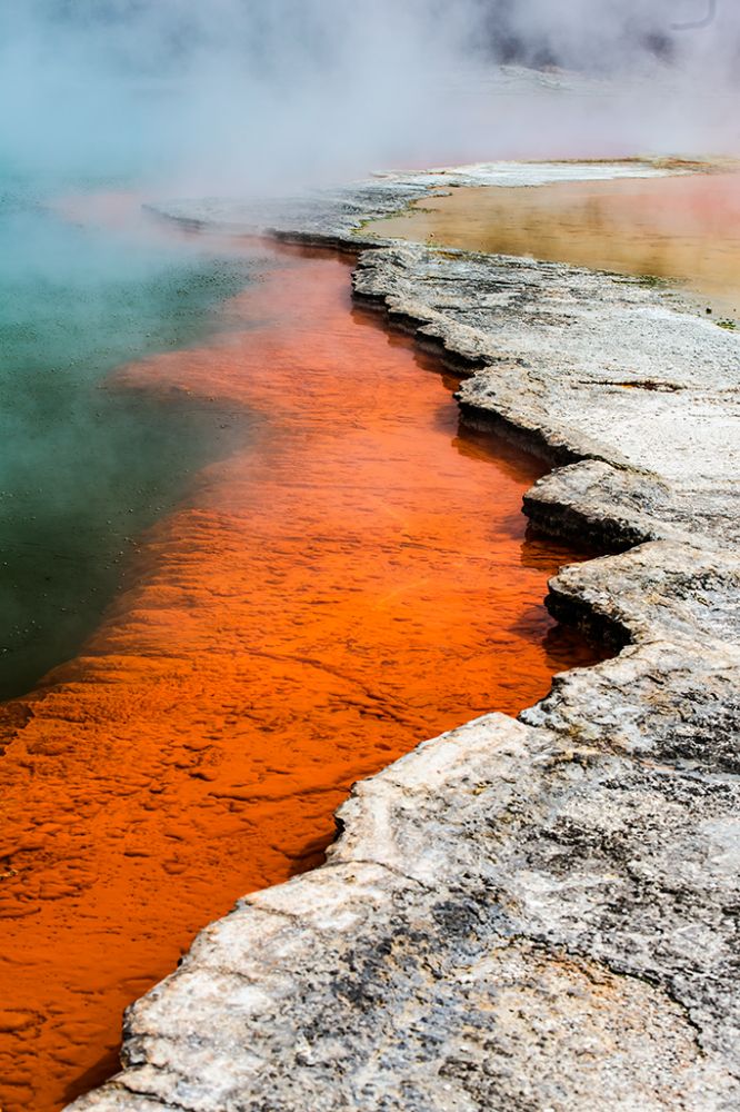 20. 的确,新西兰南岛比北岛漂亮,但北岛的Wai-O-Tapu (Sacred Waters) Thermal Wonderland 又是另一副景观独具风骚。热气腾腾的Champagne Pool,表面水温74C。水面上漂浮着CO2 气泡。