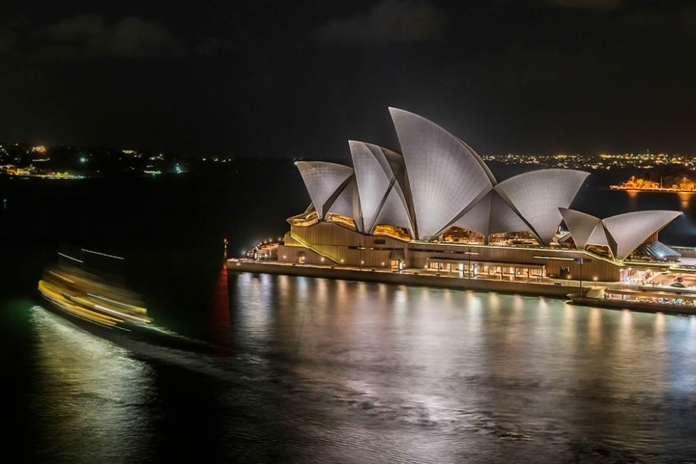 5. 第二天日落时分,我们船起锚,缓缓驶过歌剧院出海。
