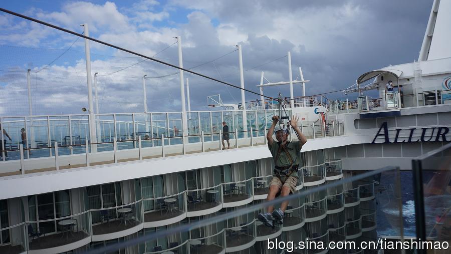 Allure of the Seas上面的Zip Line,冲浪,攀岩,滑冰等项目让游轮充满活力。