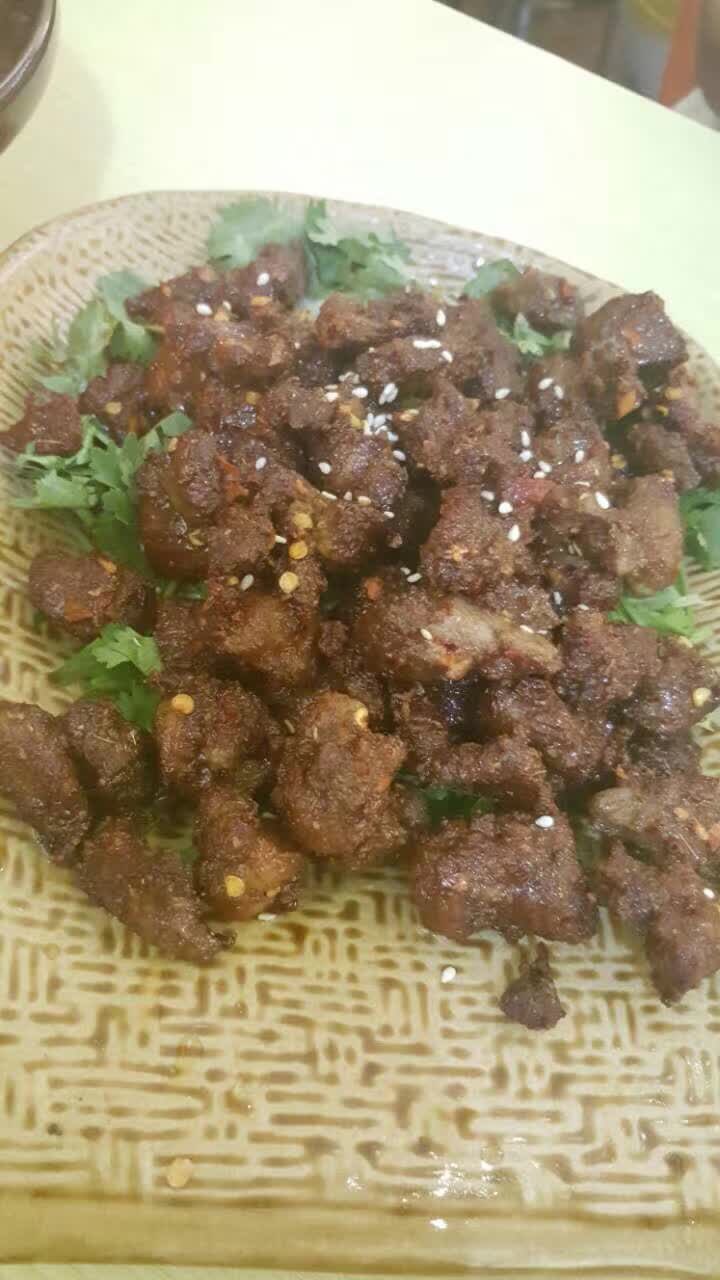 小炒羊肉我妹喜欢。。。。基本上很硬但是不老。。。。我妹说好吃啊。。。这份菜干光了。。。。除啦白菜叶子。。。