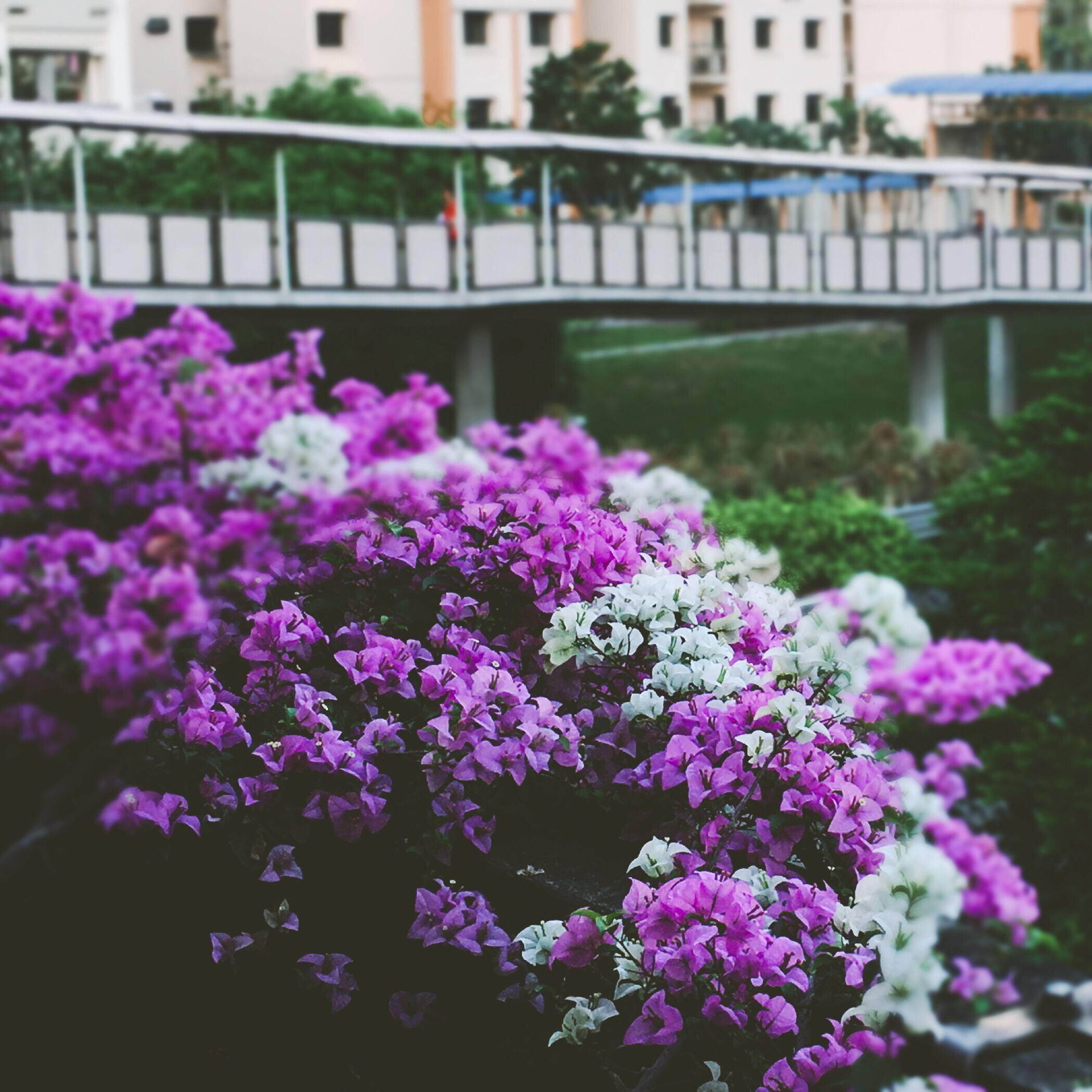 行人天桥盛开的花