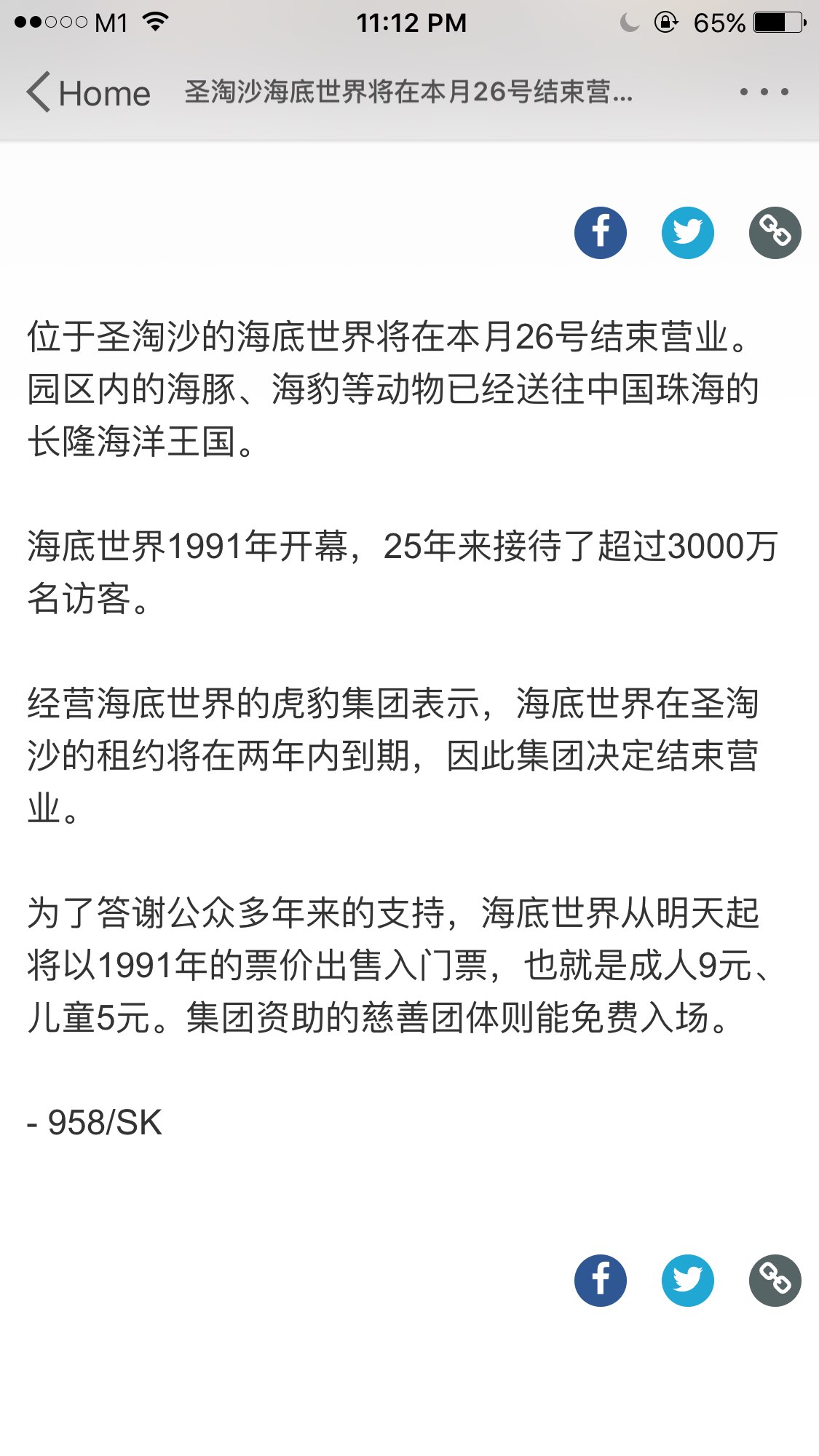 南瓜同学 • • 47521 次浏览非常震惊 前几个月去过 当时完全没有任何消息 感觉还是很值得去的地方 比国内一般的海底世界好不少