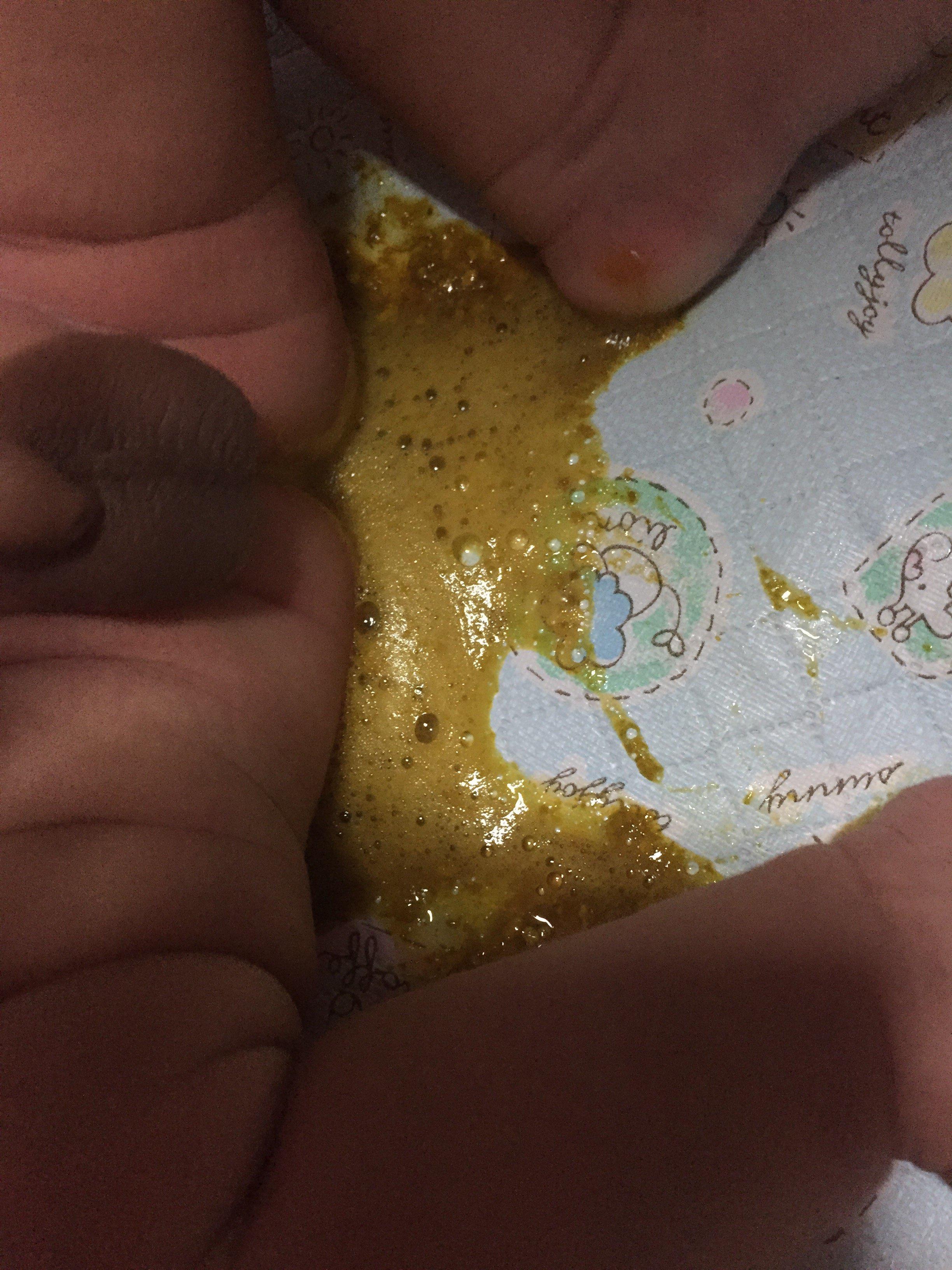 满三个月后因为快回去上班了开始训练奶瓶,这样80-90ml肯定不够喝,就加了奶粉,发现宝宝大便次数增多,黄色水水的有泡沫里面还有白色小块,因为之前宝宝7-10天或者更多才大便一次,昨天大便两次,今天又大便了,所以怀疑是拉肚子…