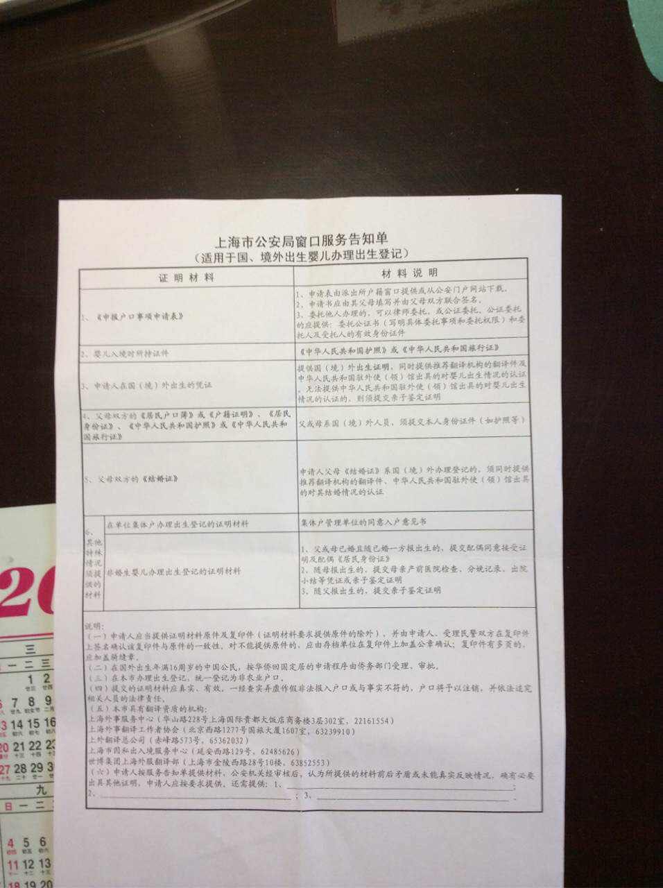 附上清单的照片,有点模糊,凑活看看。我在黄浦区和静安区的派出所拿到的这张纸都是一样的