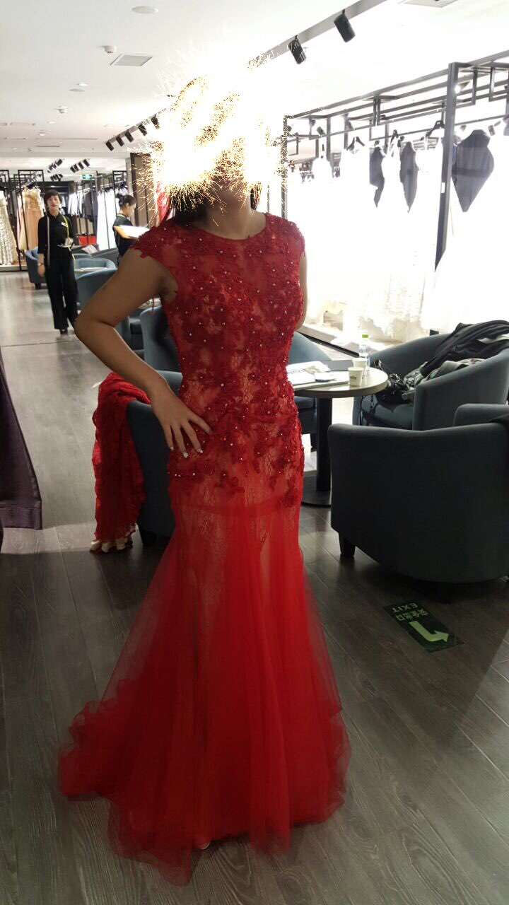 照片是挑礼服的人时候拍的,收到的新品是没有图上的那些瑕疵的