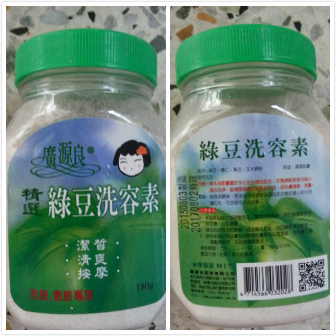 3. 台湾广良源绿豆洗容素,2块钱。非全新,用了1/6吧。