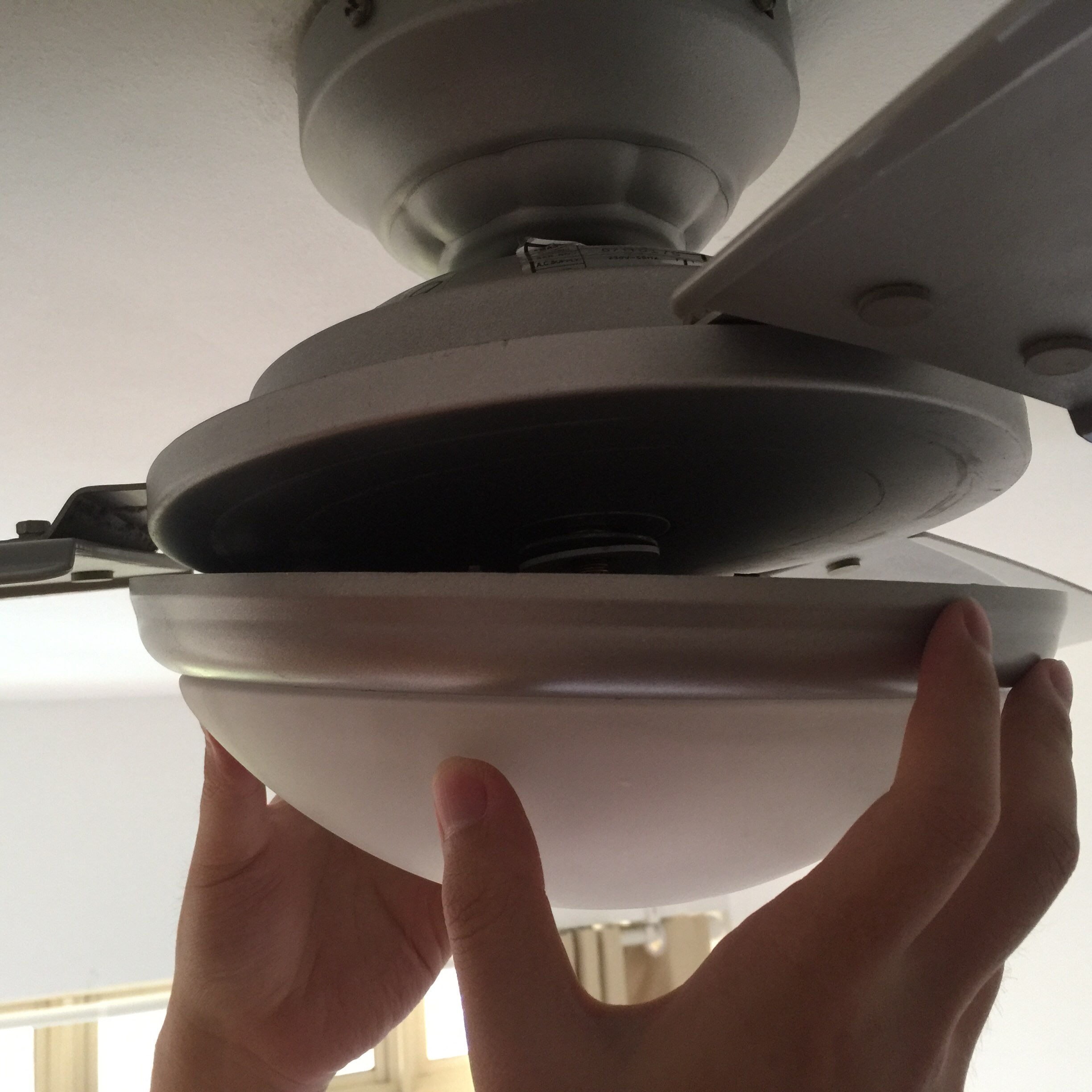 今天发现吊扇的灯摇摇欲坠,发现螺丝要从灯罩里面拧紧,但灯罩一直拆不下来,求问有没有有经验的人可以教我!!!