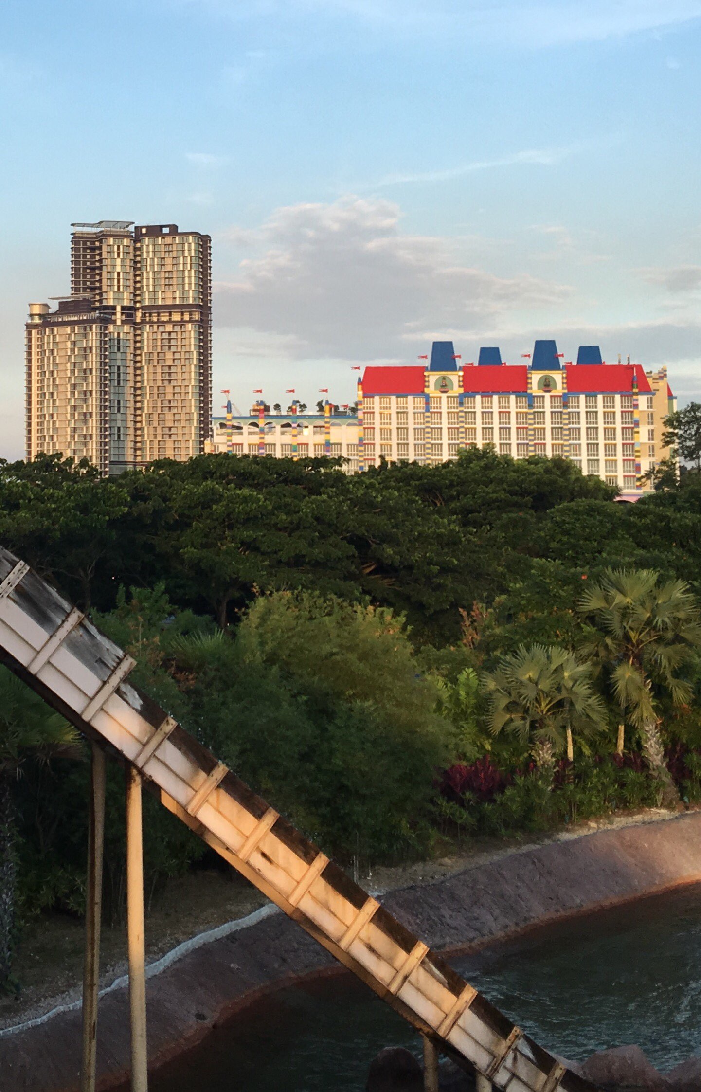如果打算在乐高玩两天的话,住Somerset很方便,就在乐高对面(照片中的左边那个高楼,右边的低楼是乐高酒店)。酒店很新,刚建好不到一年,马路对面就是乐高乐园的景区。酒店标准房周末的价钱是90几新币。