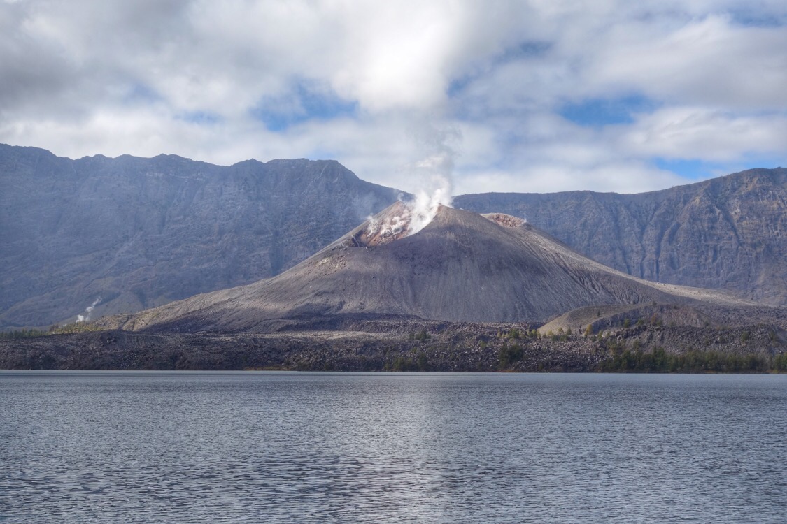 露营处可以俯瞰火山湖,不过视野局限看不到湖中心的小火山口