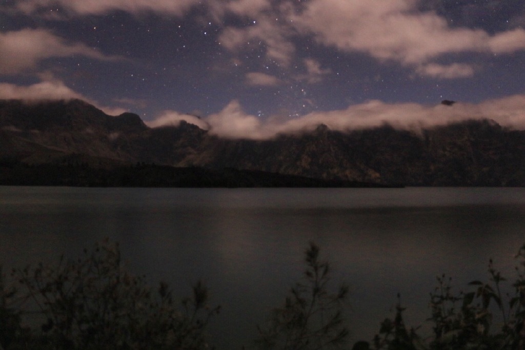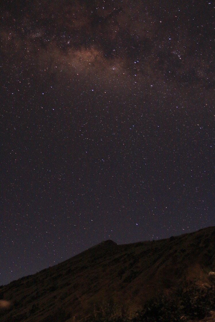 太阳落山后气温下降外加风大于是早早回帐窝着。直到8点多小伙伴出来喊山上的星空特别漂亮才挣扎着出来拍了几张,银河下面的就是顶峰