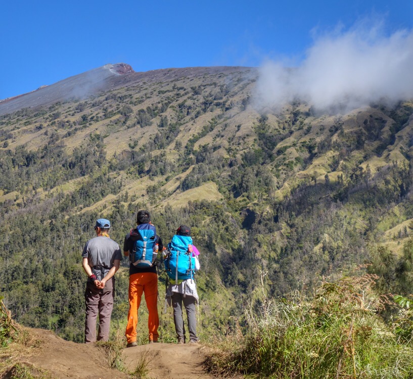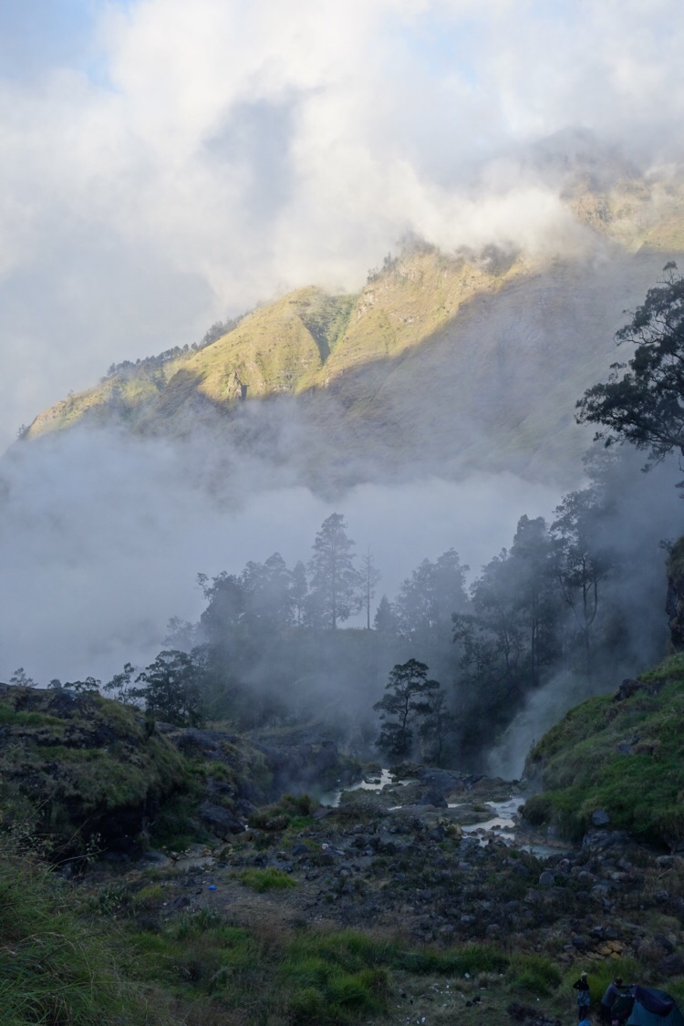 day2:早晨7点多离开senaru,开始四天三夜的徒步。开车一个多小时后先在sembalun village登记了一下,之后开始登山。当晚4点左右到达2600米左右火山口边缘的露营处。