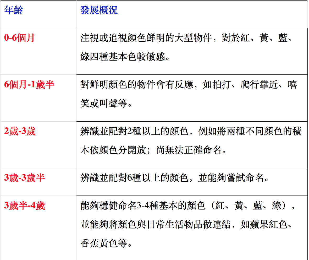 虽然没孩子,但是看到问题也忍不住去谷歌了下“儿童发展 颜色辨识”的关键词