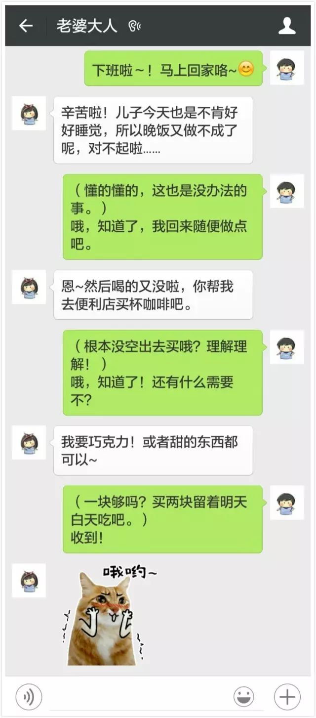 其实内心已经对老婆无条件投降了: