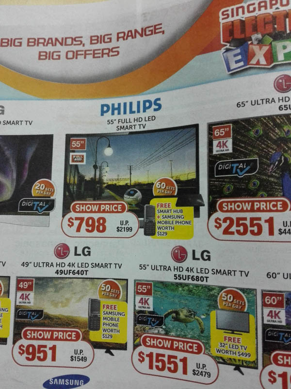 EXPO 电器展 19-21 AUG你可以去看看,今天TODAY 报纸有一个 branded 58‘ ultra hd 4k LED tv, $798, 不过一天20套的量你可以去看看,今天TODAY 报纸有一个 branded 58‘ ultra hd 4k LED tv, $798, 不过一天20套的量