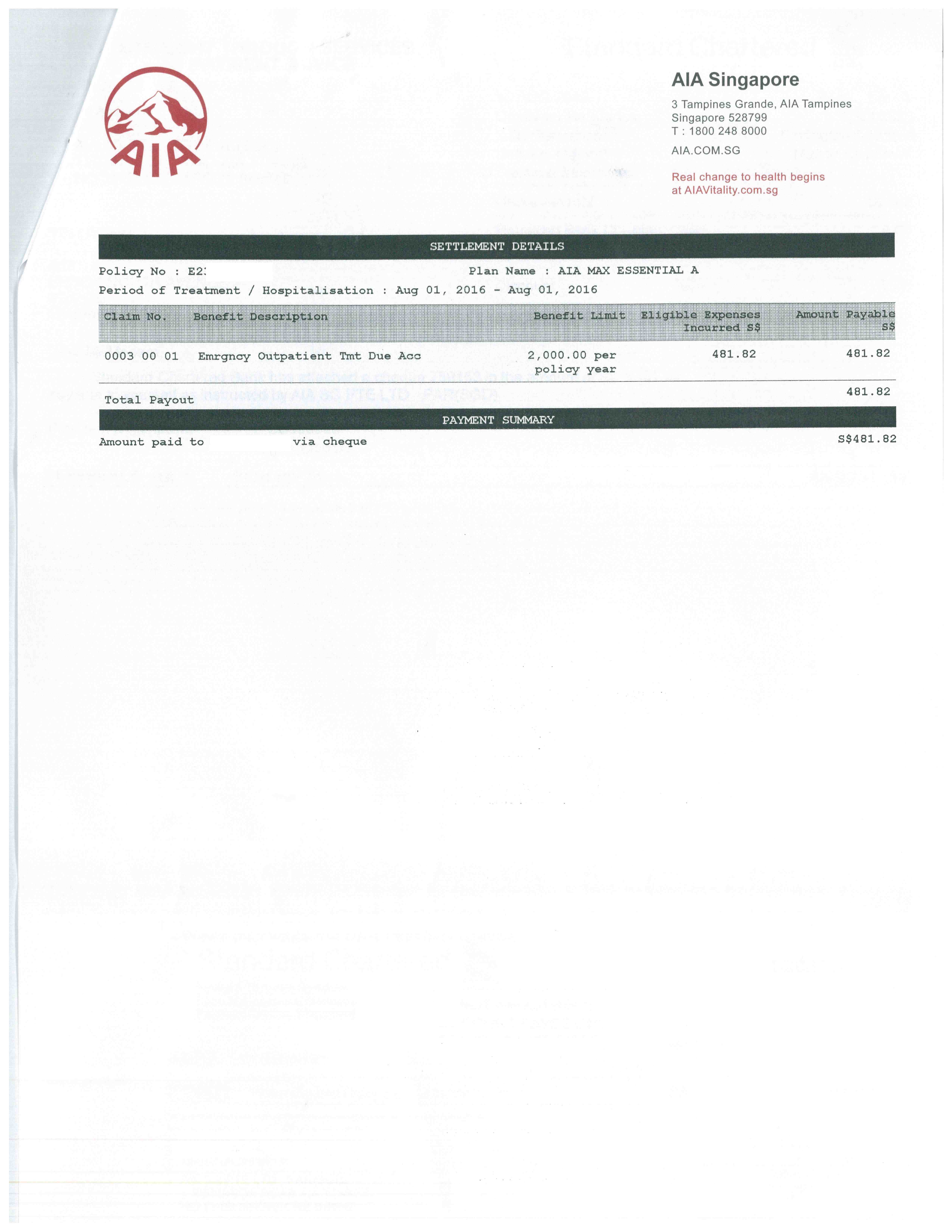 看你的图, 这个是通过 AIA Healthshield Gold Max with Rider 买的。但是这个保单不是只保住院吗? 你又没有住院, 去的也不是 A&E, 怎么会理赔呢? 我以为只有住院才有的保