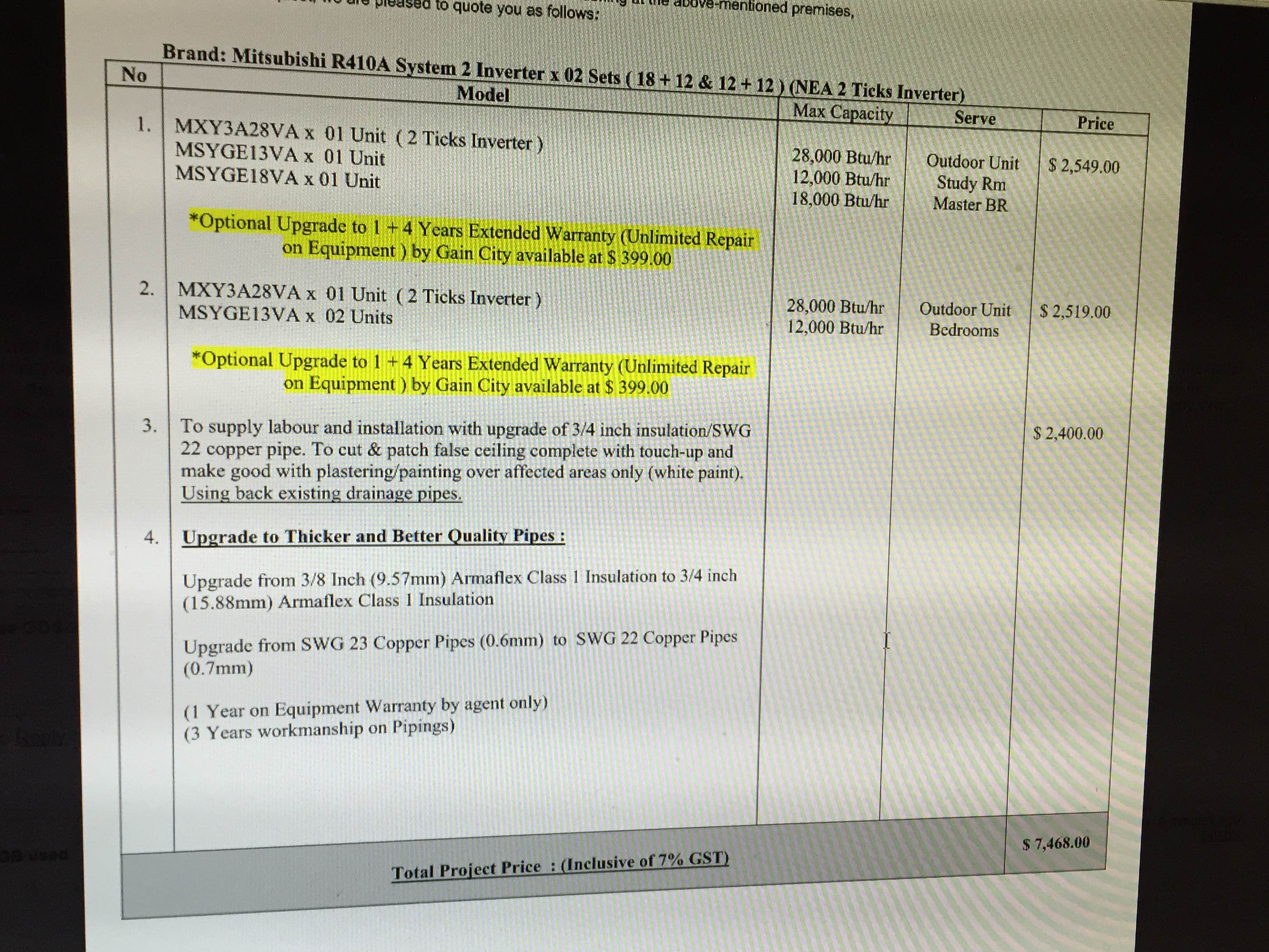 差不多这个价格Gain city的人工大概是1200 一个system。你如果不要做concealing, 就会便宜很多。