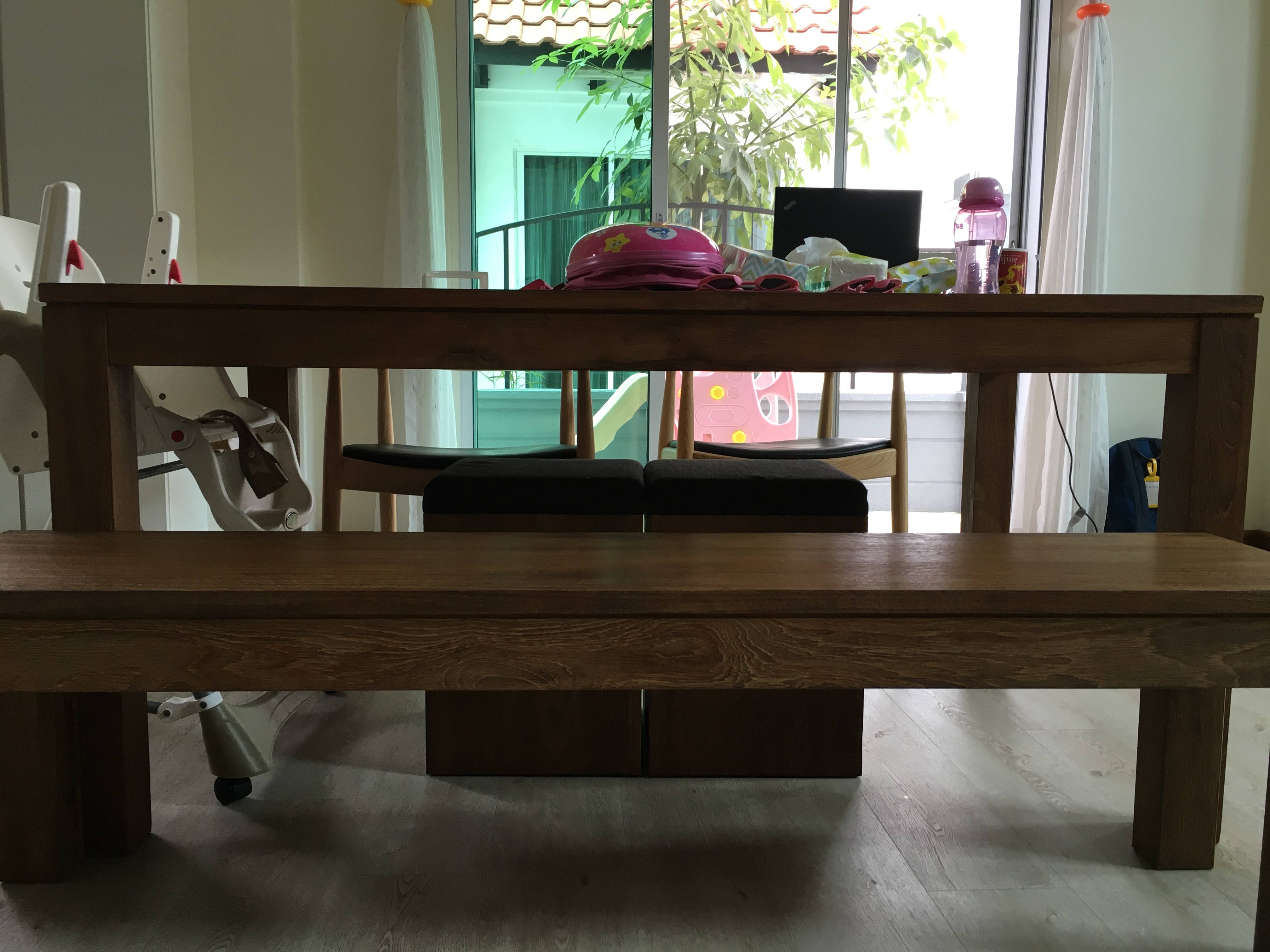 柚木的颜色会随着时间变深,可能对某些人来说这个算是缺点。还有就是比较贵。我家的餐桌加那条长凳,再加桌子下面的两个小凳子大概要4000块。 -