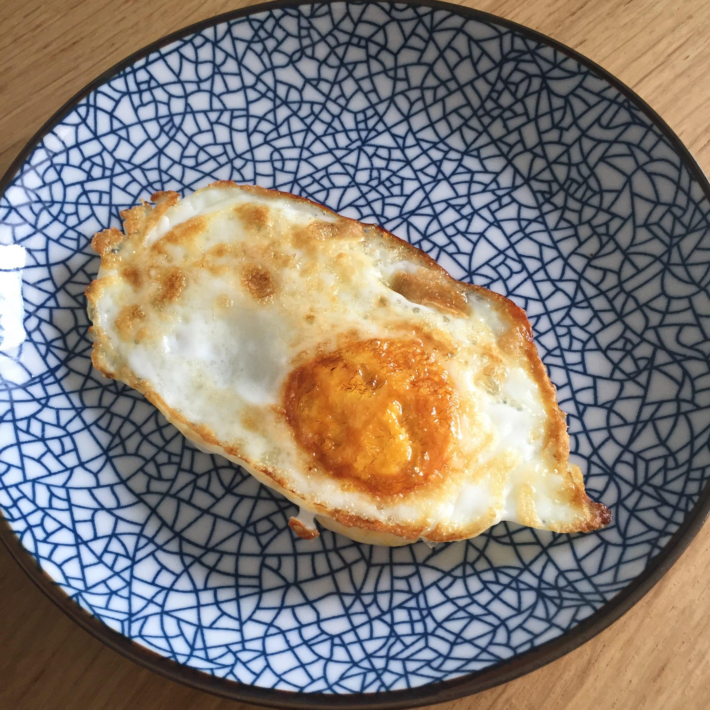 就是小火的时候中间有一坨火,开大了外面还有一圈,试了一下用28cm的煎锅,火苗也是可以舔到差不多锅的边缘的。还从来没用这个炉子煎过鸡蛋,特地去煎了一个,外面焦焦的,也没有里面不熟哦。