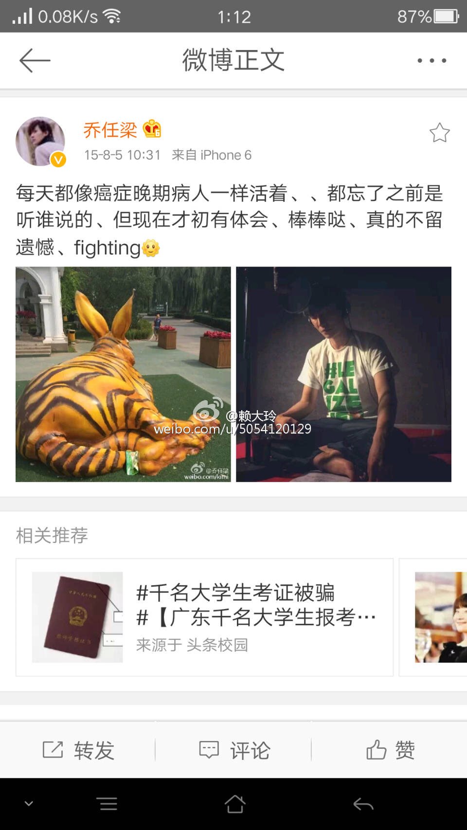 看到网友翻出的乔任梁以前的微博下面的评论 虽然不知道是真是假 只是想象任何一个人整天面对这些评论 估计都会抑郁吧