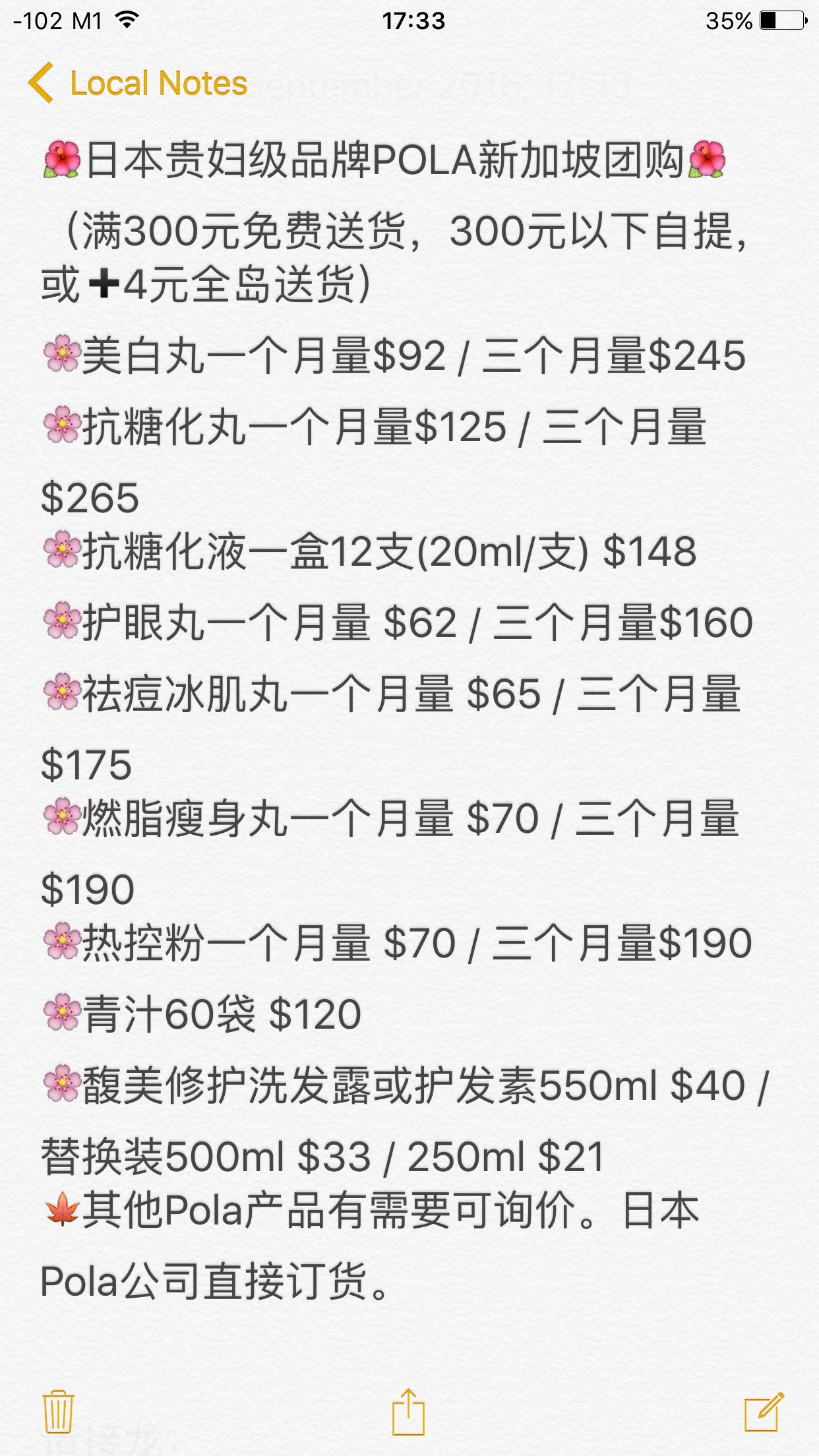 pola新加坡团购开启,从日本直邮到新加坡,pola公司内部订购,保证质量!有兴趣的可以跟帖询问或加入微信群!可提供小票!
