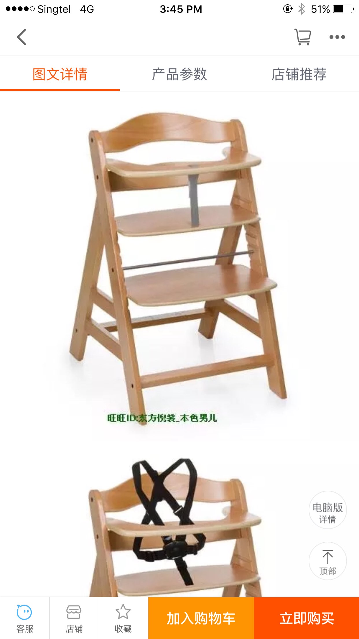看到这款淘宝看到这款,跟宜家的很像但是有改进,餐盘从宜家方形变弧形,座椅本身有垫子可拆洗不用单独买,最好的就是可以调高度。
