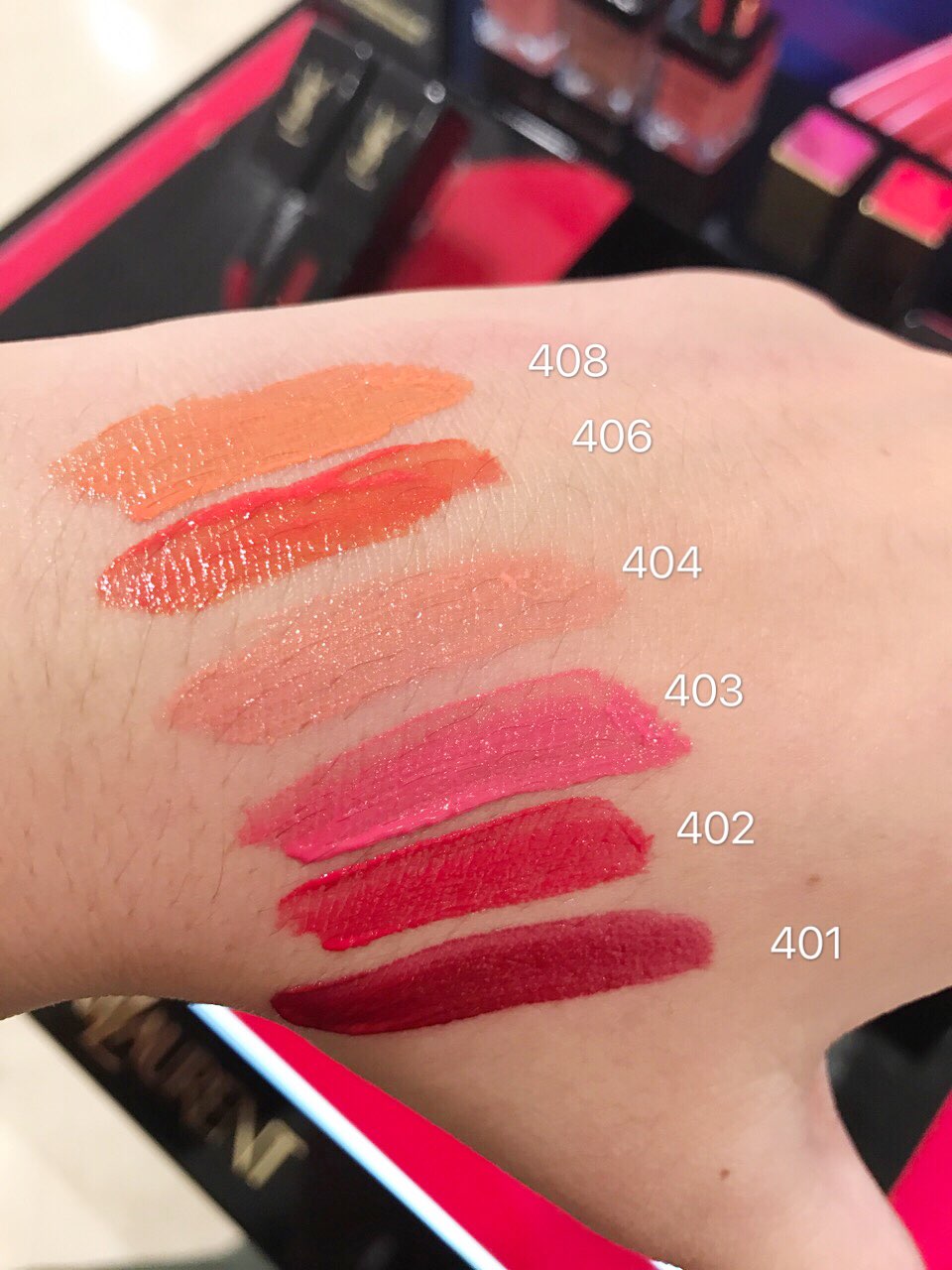 我买了402,深深的觉得407颜色很难看啊……今天taka YSL那个骚气的小哥都说407好难看,为什么大家都要找,blogger真是太难懂了为什么要推荐它