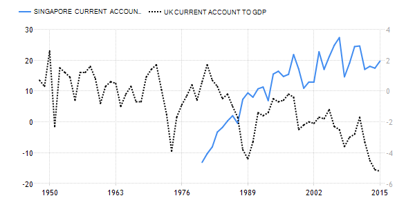 1. Current account: Singapore (+19.7%) vs UK (-5.2%)