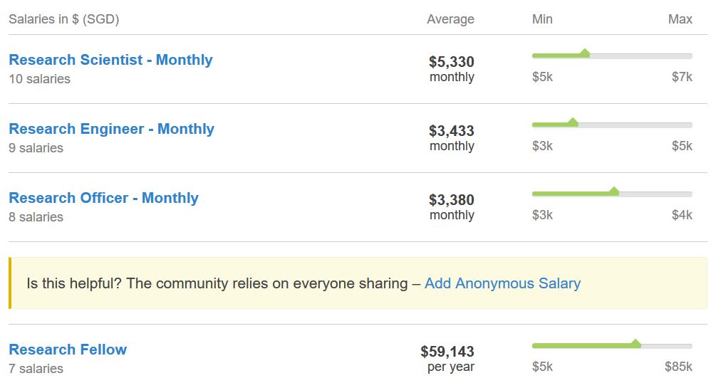 国内大学研究所青年研究人员只看工资单估计也就1000新币。