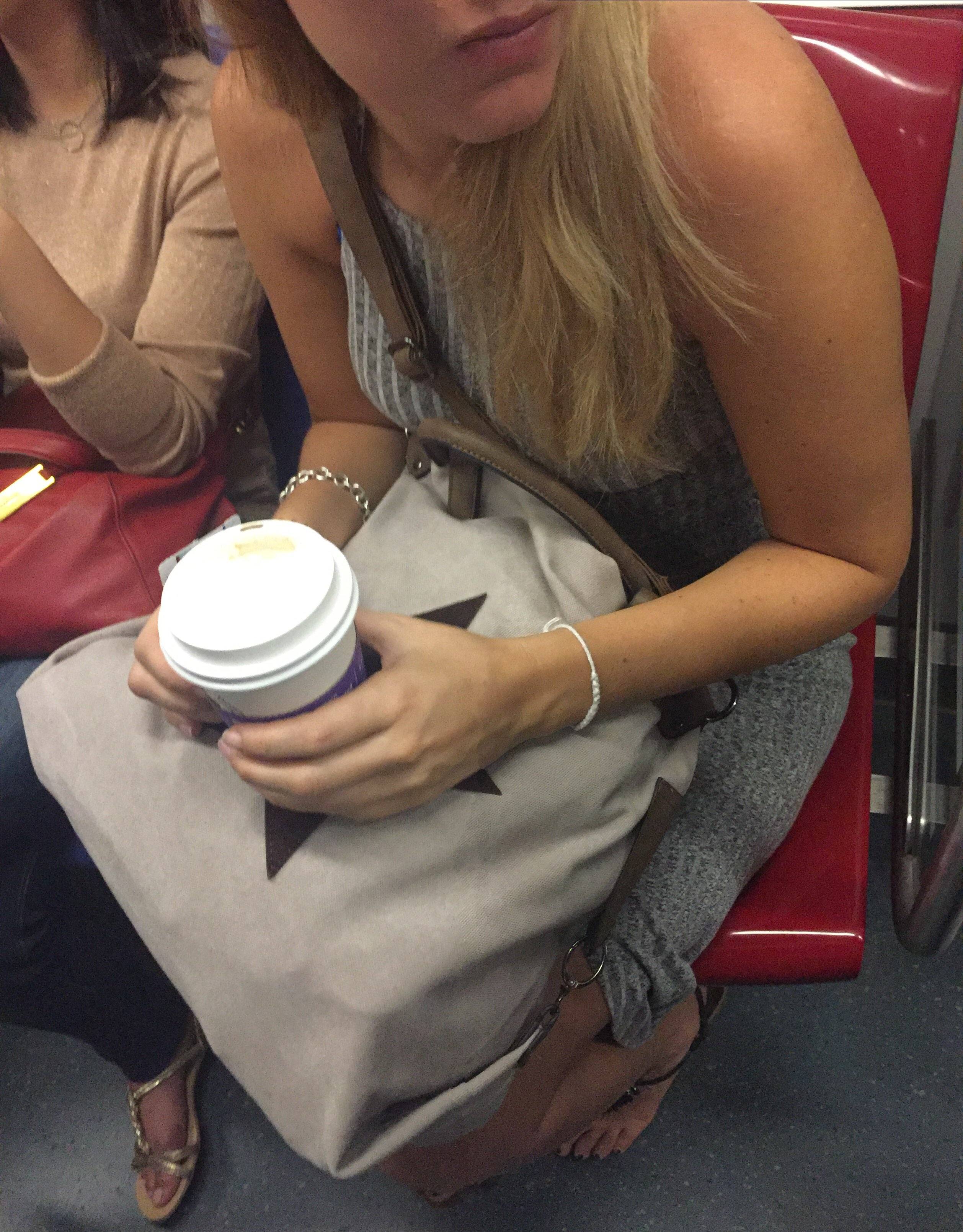 现在地铁上 有2个女红毛喝咖啡我冒死拍照