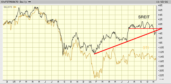 新加坡REIT已见顶下滑。注意SREIT早在去年8月和今年1月见底回升,早于香港楼市见底强力反弹和新加坡楼市小阳春,也早于新加坡股市见底。