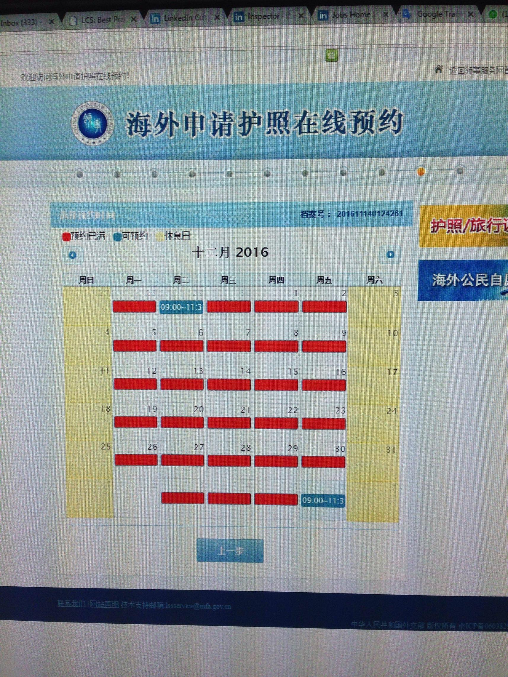 护照到明年5月到期,今天上午预约。资料、照片都上传了。但是卡在预约日期那里。我选了可预约日期,但是就是不出来下一步按钮,只有上一步。有人最近更换护照的可以指点一下吗?多谢啦。